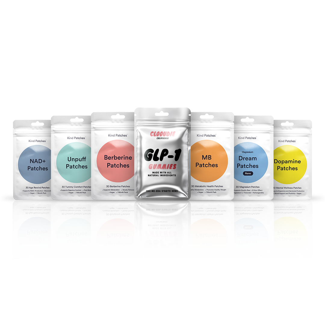 If the holiday season has you feeling sluggish, stressed, or out of sync, the Holiday Essential Kit gives you a simple way to stay balanced and energized. With 6 powerful, plant-based patches – Berberine (formerly GLP-1), Unpuff, MP, NAD+, Sleep, and Dopamine, plus a free gift from us, it helps support: