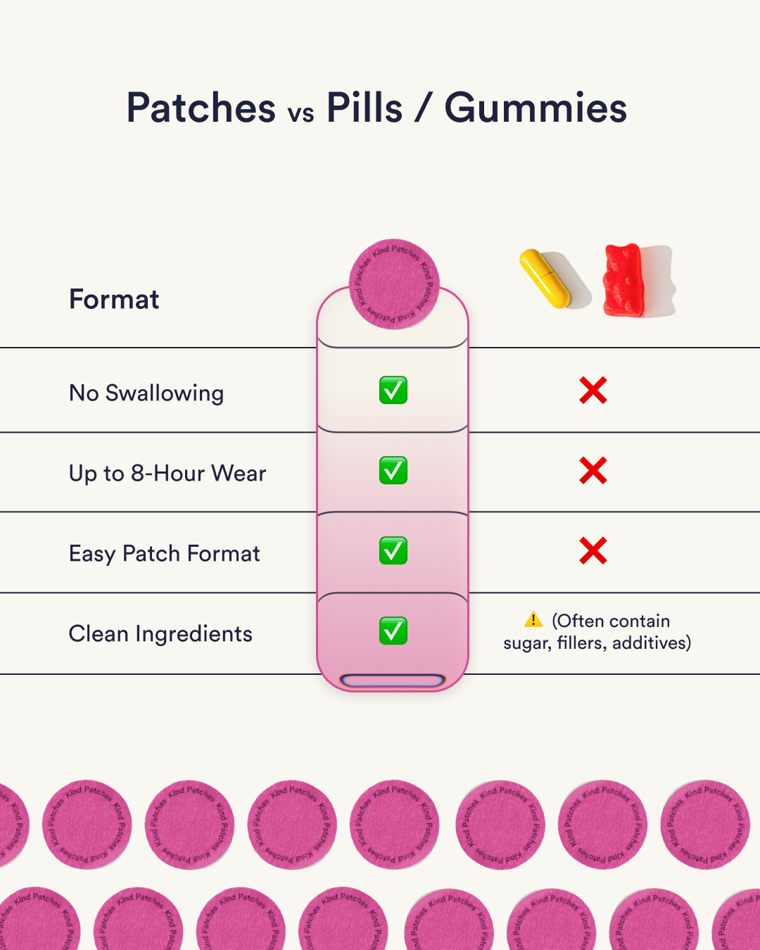 4. Convenience and Ease of Use: Patches are convenient and easy to use. Simply apply them to clean, dry skin, and they typically adhere securely, allowing you to go about your day without interference.